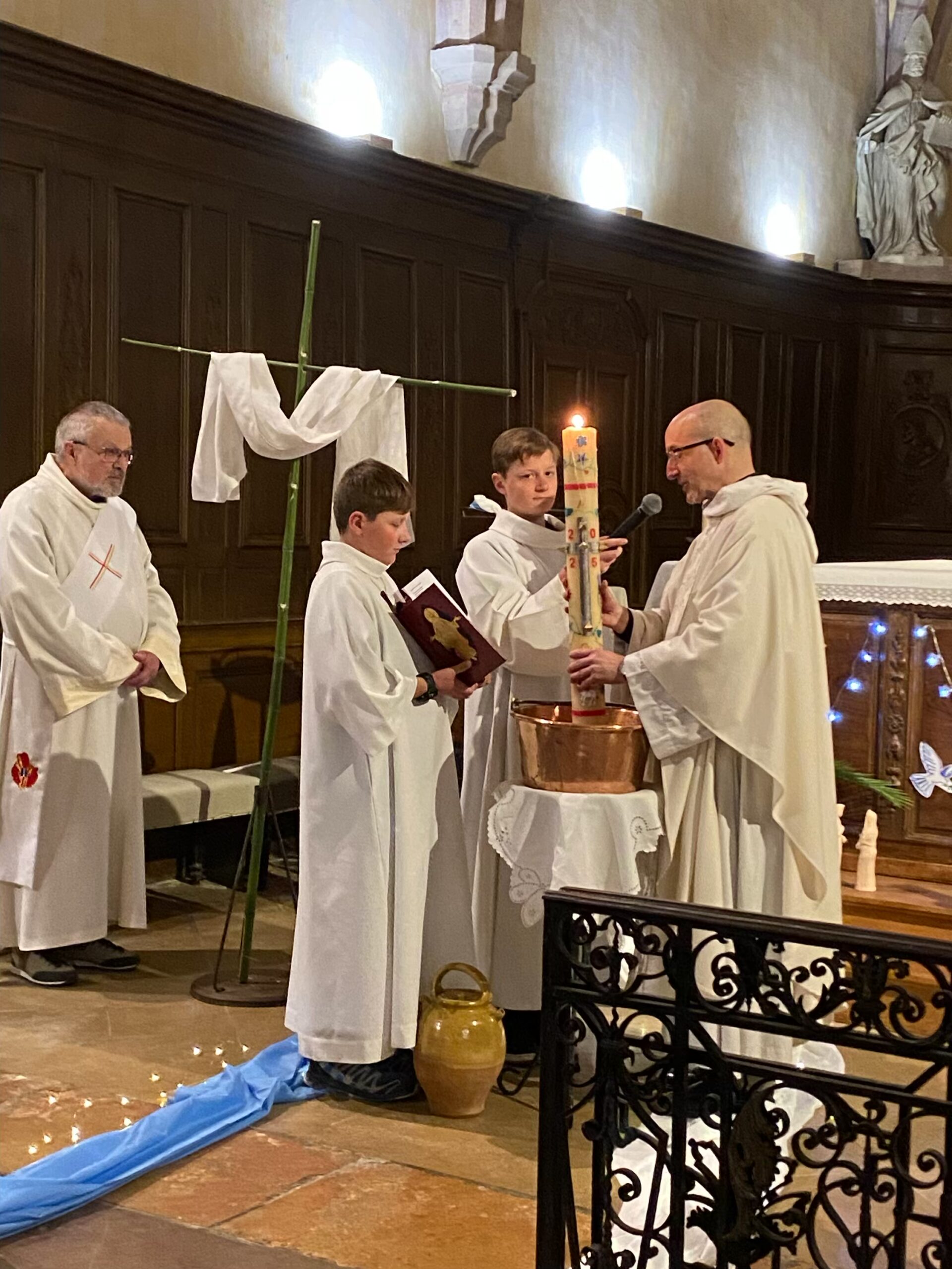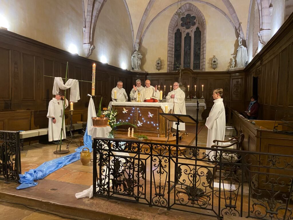 La Vigile Pascale a été célébrée en l’église Saint-Aignan de Gevrey en présence d’une belle assemblée. Cérémonie chantée par une quinzaine de choristes accompagné par orgue et violon.
