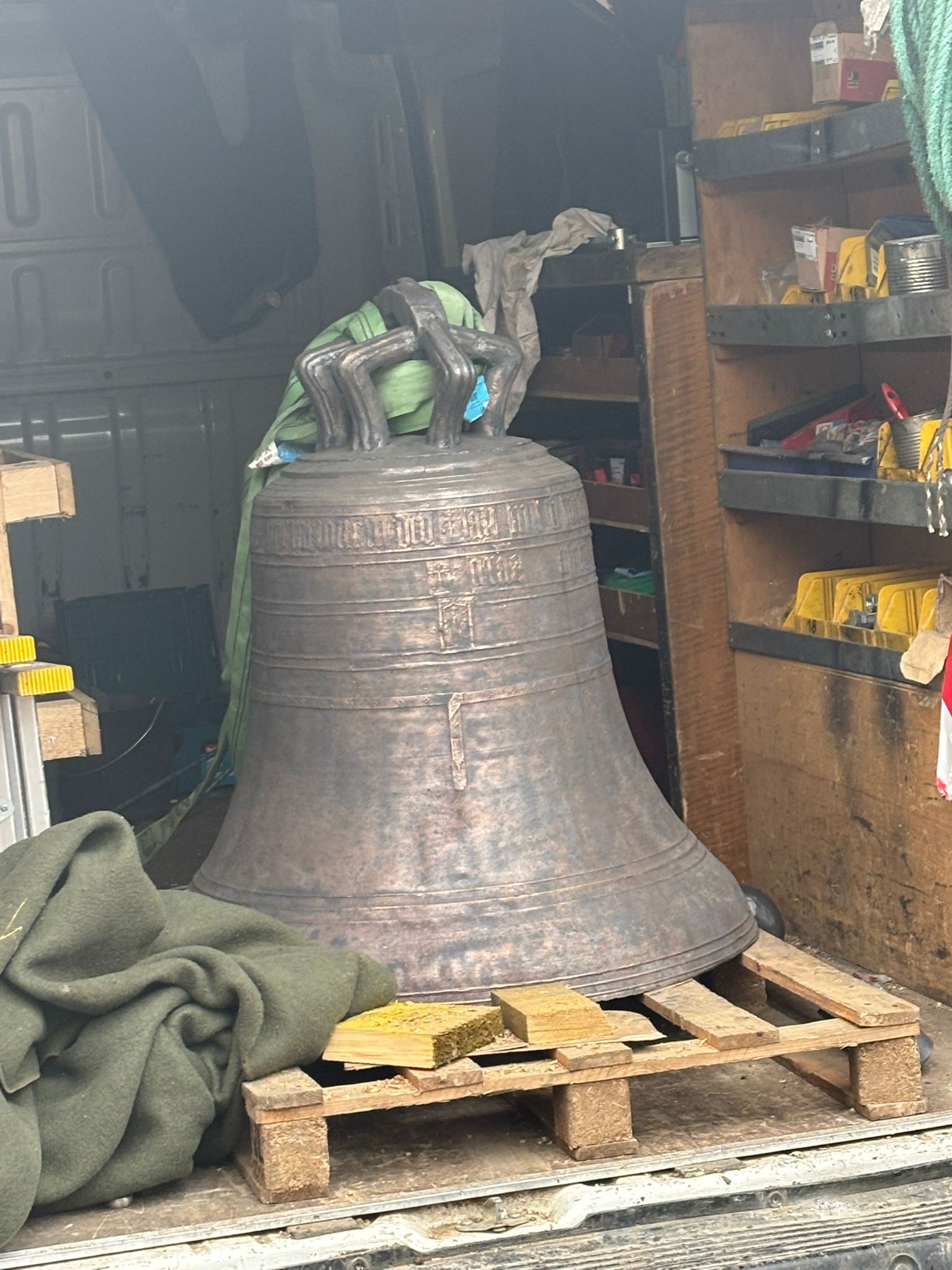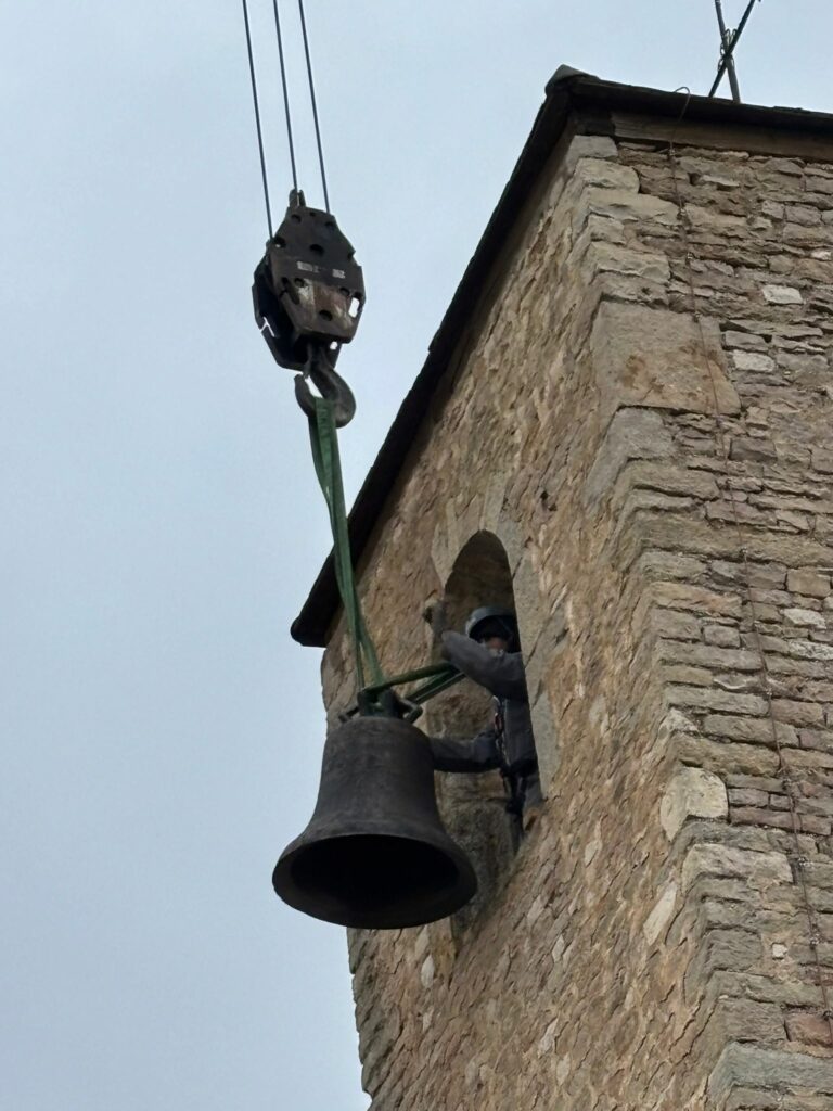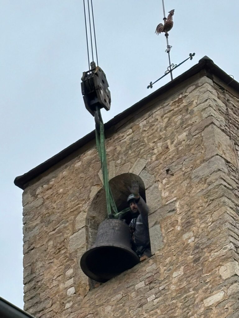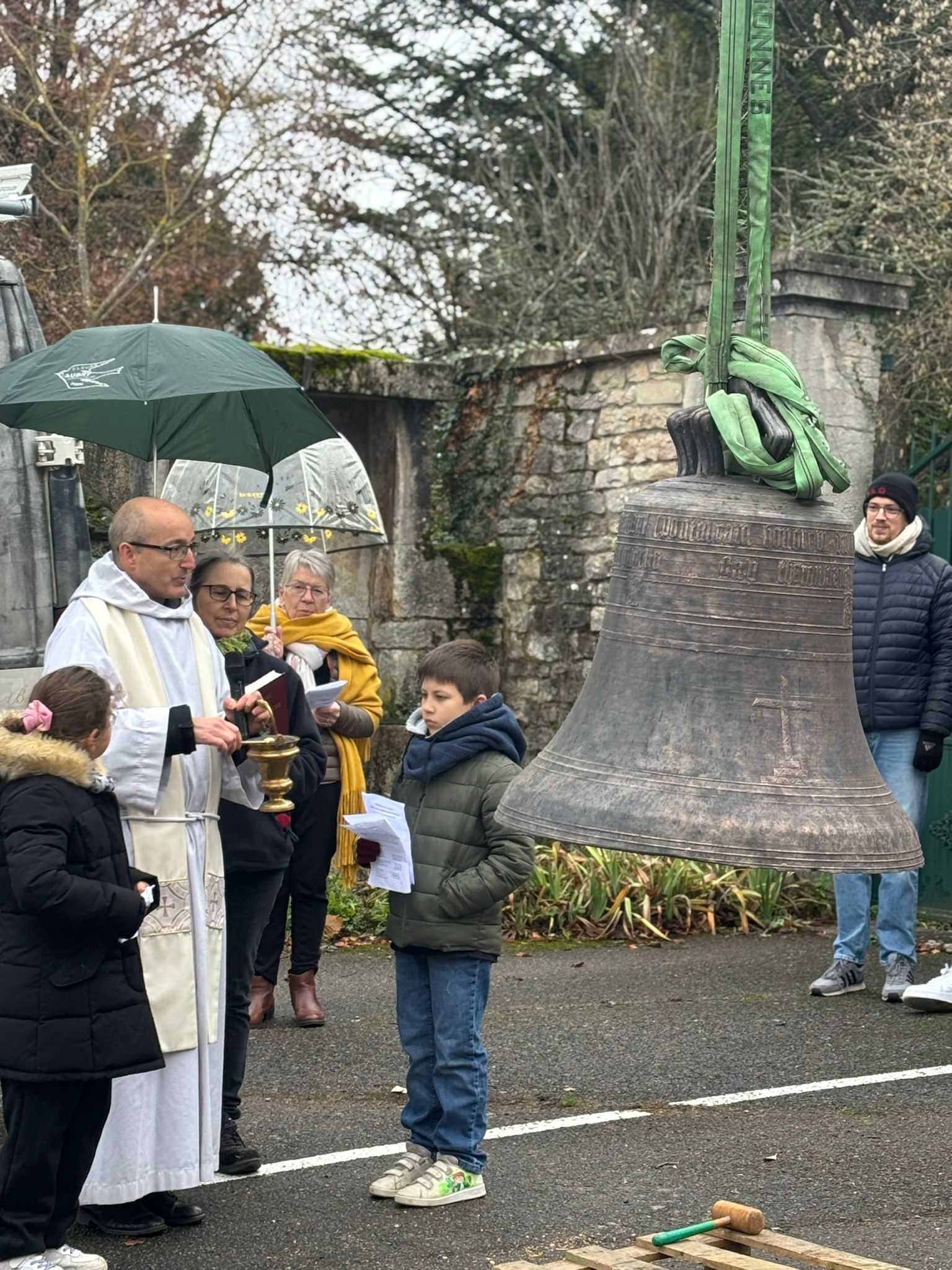 L’église de Brochon a retrouvé sa cloche sous l’oeil attentif des enfants du caté, de paroissiens et de curieux. Un beau moment sous le ciel bourguignon !