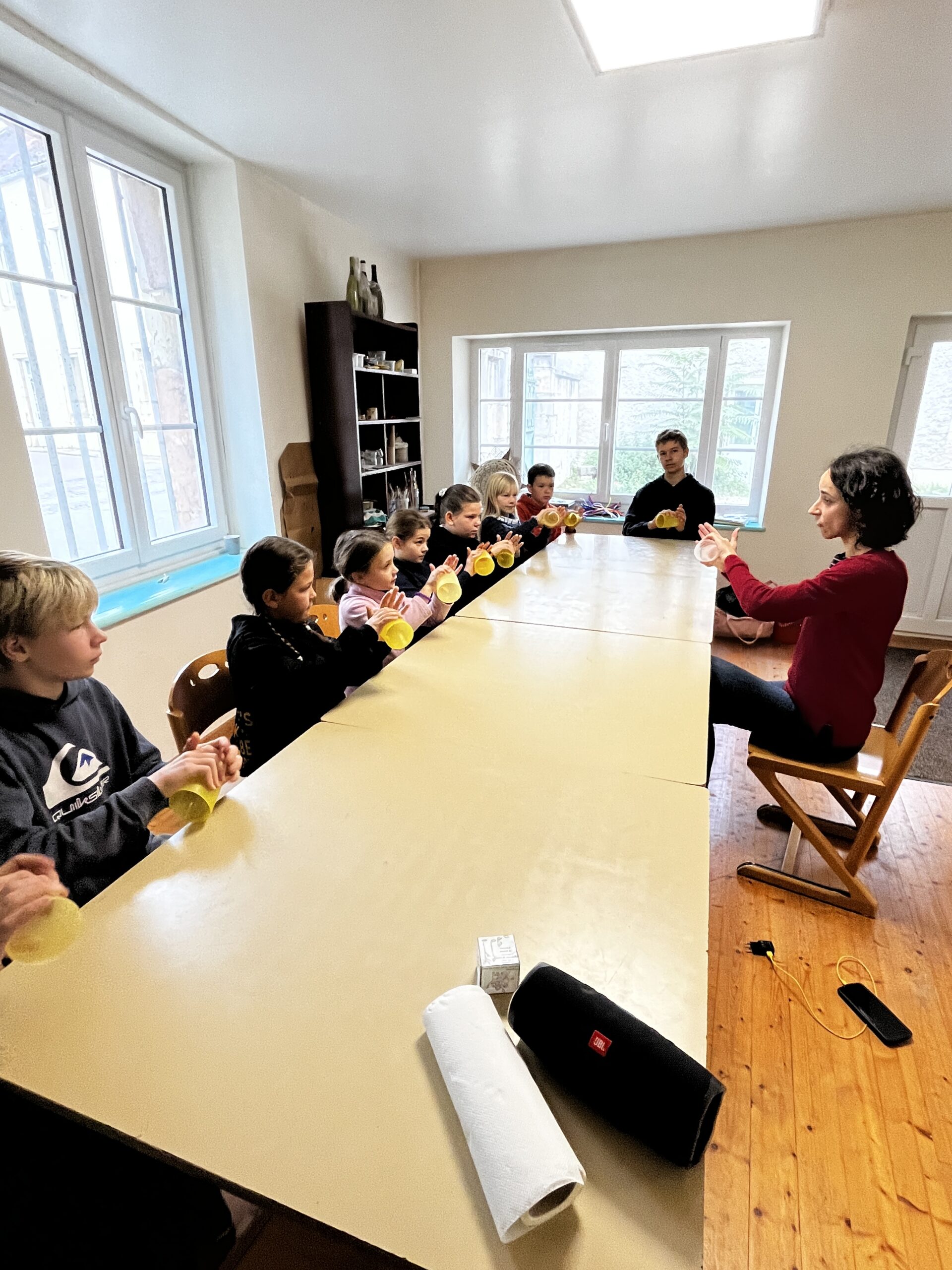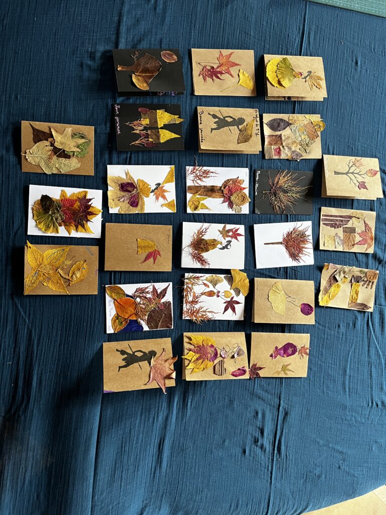 Entre danse et chant de la renaissance, rythme, poterie, un échange par écrit avec les résidants de la croix Violette s’est mis en place. Les enfants ont décoré des cartes postales avec les feuilles de nos arbres et plantes arborants leurs belles couleurs d’automne et leurs ont écrit des petits poèmes.