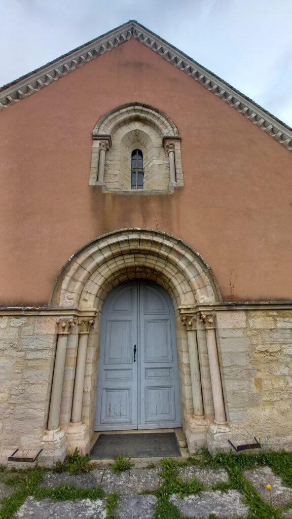L’élégant portail en plein cintre de la façade occidentale, orné de chaque coté par deux colonnes à chapiteaux avec motifs floraux n est pas sans rappeler le portail de l’église Gevrey-Chambertin.
